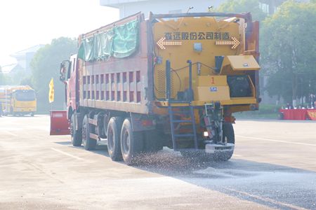 演練活動在高速管理公司所轄杭浦高速管理處開展,20多名演練人員,1臺渦噴6吹雪車、2臺撒鹽機、2臺雪鏟車、多臺路巡車嚴陣以待,積極投入到演練活動中來。隨著演練總指揮一聲令下,渦噴6吹雪車轟轟隆隆啟動了,大噴頭里一股熱浪急速涌出。“這輛吹雪車是公司1月份新引進除雪設(shè)備,它擁有航空軸流式渦噴6發(fā)動機,最大吹雪速度≥20km/h,一次除雪寬度≥30m,功率大,風力強、除雪效力高,能有效地清除車體兩側(cè)積雪和浮冰,是嘉興境內(nèi)首臺吹雪車,是冬季高速公路除雪保暢工作的終極利器”杭浦管理處主任周劍介紹道,“是我們冬季抗冰除雪的‘新底牌’和主力軍。”