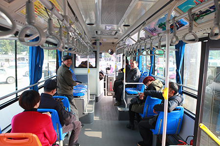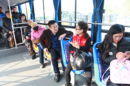 投運(yùn)的專線公交上,漂亮明亮的內(nèi)部環(huán)境、暖和舒適的座椅,讓乘客們眼前一亮,一些細(xì)心的老年乘客還不禁這里摸摸那里試試,不停點(diǎn)贊,“舒適、漂亮、干凈”!