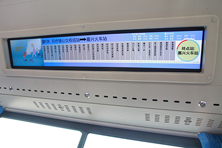 “‘游1’路作為旅游公交專線,車輛的舒適度有了很大提升。”國鴻公交相關(guān)負(fù)責(zé)人表示,“投入的13輛油電混合動(dòng)力的新能源車都是今年新購置的車輛,車內(nèi)設(shè)施設(shè)備齊全,具有‘低能耗、低排放、高經(jīng)濟(jì)性’的特點(diǎn)。同時(shí)‘游1’路所有車輛內(nèi)都安裝了LCD的顯示器,可實(shí)時(shí)顯示到站信息,當(dāng)前到哪一站一目了然,還可對(duì)旅游資源進(jìn)行相應(yīng)的介紹。”車廂一側(cè)除電子線路走向圖外,還有乘客須知、安全提示等內(nèi)容,另一側(cè)設(shè)有‘美麗嘉興’的景點(diǎn)宣傳畫。