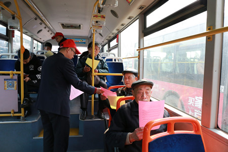 活動現(xiàn)場,公交志愿者們頭戴小紅帽,手拿宣傳單,積極向廣大市民宣傳《憲法》相關(guān)基本常識和《浙江省城市公共交通車輛乘坐規(guī)則》,并耐心解答市民問詢,為他們提供憲法、公交政策宣傳和公交出行服務(wù)。為進一步擴大宣傳面,志愿者們走進車廂,向公交駕駛員和乘客們宣講相關(guān)內(nèi)容?!皫煾?,最新的《中華人民共和國憲法修正案》在今年3月11日召開的十三屆全國人大一次會議上已經(jīng)通過,您知道這個消息嗎?其實,憲法和我們的生活息息相關(guān),我這里有兩份《憲法》和公交乘坐規(guī)則的宣傳單請您拿好,坐車的時候可以看一看,了解下我們公民的基本權(quán)利、義務(wù)和公交乘坐規(guī)則等知識。”乘客們拿到宣傳單后,都認真地看了起來……
