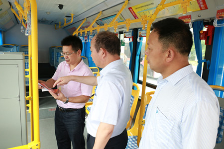 在公交公司,何宇健一行首先到高鐵嘉興南站公交樞紐站開展了現場調研,對71路紅色公交專線打造情況進行了深入了解,現場查看了71路公交車身、內飾等紅色文化主題宣傳情況,并親自上車體驗紅色文化渲染氛圍。在聽取公交公司具體介紹后,何宇健對公交公司“獻禮七一建黨節,我和公交有個約會”專項活動開展情況予以肯定,并希望71路在現有紅色文化宣傳基礎上,更上一層樓,精益求精打造具有鮮明主題特色和豐富文化內涵的紅色公交專線。在隨后的調研座談會上,公交公司圍繞2018年上半年度經營生產情況、重點工作開展情況、存在問題和困難以及下半年工作思路,向何宇健一行進行了詳細匯報。何宇健對公交公司上半年度總體工作開展情況及所做的努力予以充分肯定,并對下一步工作思路提出了五點要求:一是要在年度重點工作上謀思路、想對策、挖亮點、出實效,強化與各區政府的溝通銜接,充分運用公交智能化建設,探索定制公交、區域環線公交等,持續深入推進公建民營模式,在公交線路或營運分公司開展試點,深挖內潛,推進企業降本增效工作。二是要加快科技公交、智慧公交建設步伐,進一步擴展線上充值渠道,建設公交APP,實現市區“銀聯云閃付”公交應用功能。三是要站在全局和長遠角度,進一步完善國際商務區停保場規劃建設工作。四是要繼續發揮黨建引領優勢,黨建工作與企業治理有機融合,不斷增強公交吸引力,提升市民滿意度。堅定有力抓好黨風廉政建設,推動全面從嚴治黨落到實處。五是要強化安全生產工作,納入公司重要議事日程,做到常抓不懈、警鐘長鳴、一抓到底。