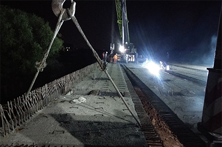 據了解,灣北二期工程TJ06標段項目部共承擔七座橋梁施工,其中汾湖大橋是國高網G15W2浙江省對接江蘇省的第一座大橋,該橋跨越太湖流域太浦河航道,橋梁全長403米。自2016年7月開工建設,項目部齊心協力、攻堅克難,橋梁施工取得了階段性進展,為下一步路面工程的開工奠定了基礎,為全面實現年度施工任務創造了條件。