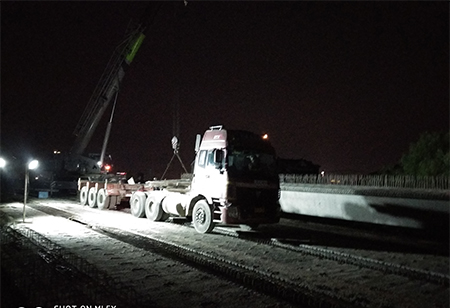 5月24日22時,隨著兩臺大力水手將80噸重的預制箱梁穩穩落在0#臺及1#墩橡膠支座上,標志著灣北二期浙江段汾湖大橋全橋順利合龍。