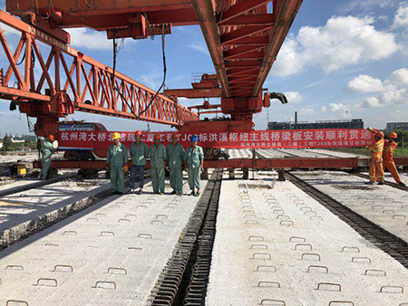 TJ03標段起止樁號為K11+473.5~K14+503.18,主線長度3.03km,全部為高架橋。本次完成的嘉善高架洪溪樞紐主線橋梁板安裝任務,是本項目連接南北高架的一個重大節點,對即將全面展開的路面工程施工提供了有力保障。