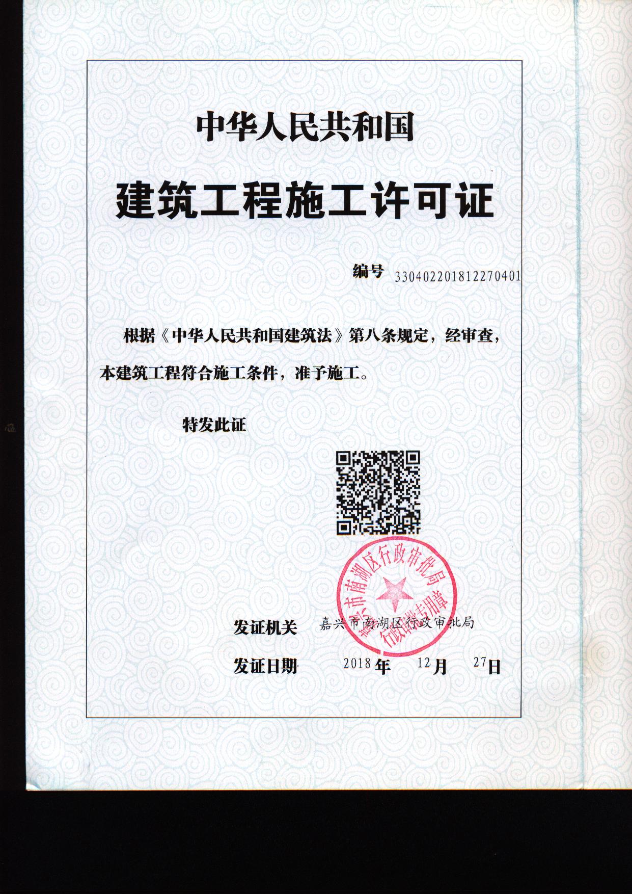 嘉興市城鄉公交雙溪路停車場項目建筑工程施工許可證