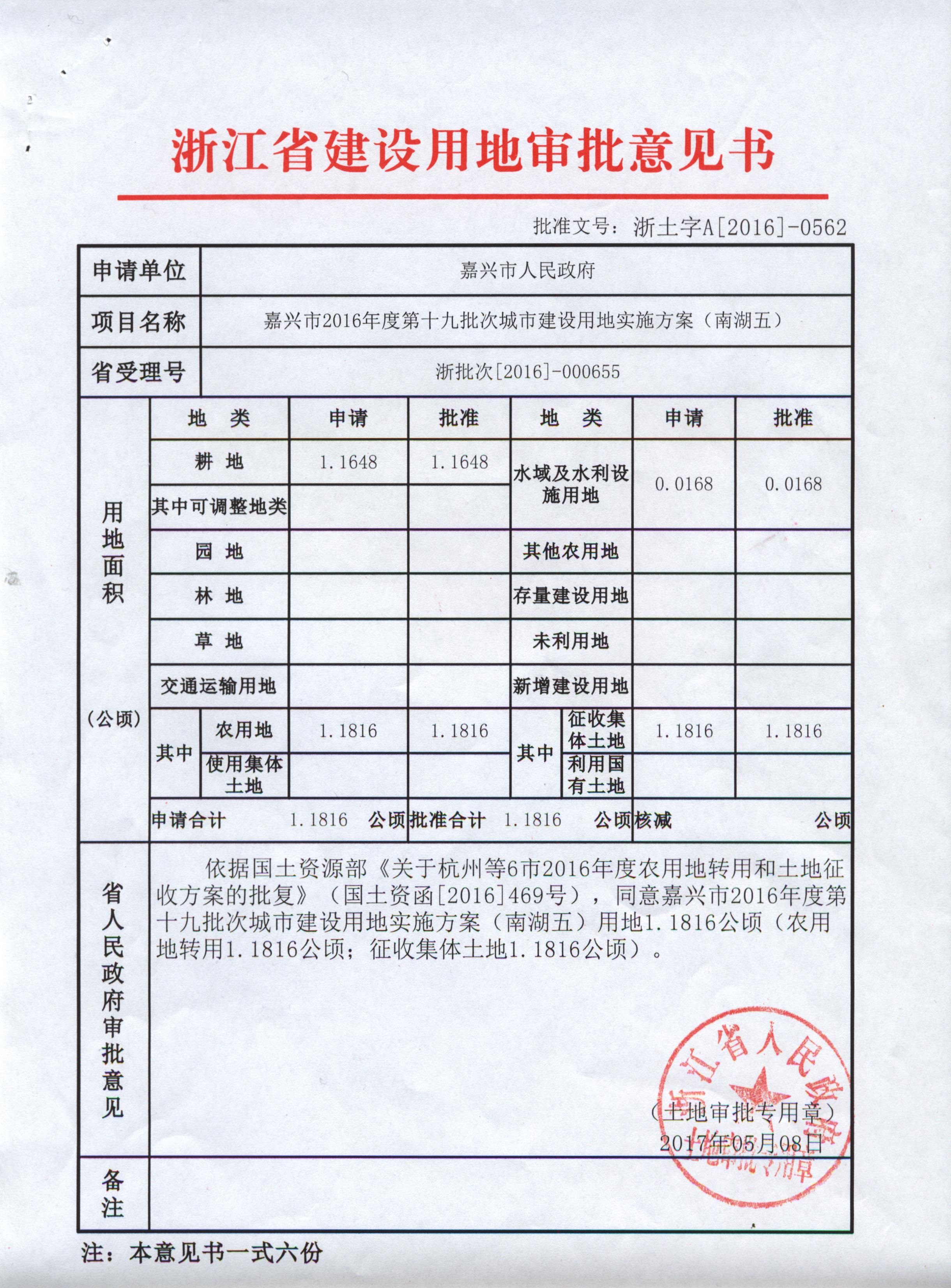 嘉興市城鄉(xiāng)公交雙溪路停保場項目建設(shè)用地審批意見