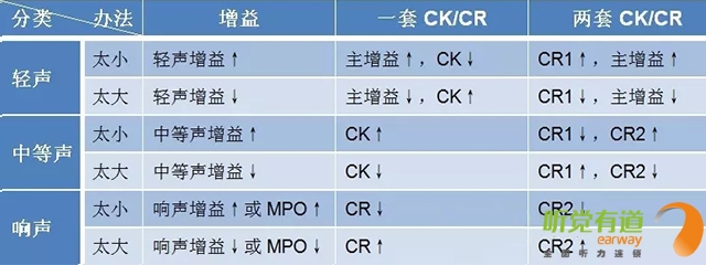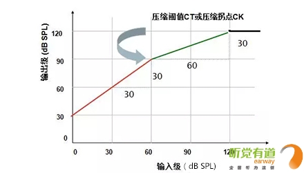 顧名思義,壓縮就是把超過一定強度的聲音減小至聽損患者縮小的殘余聽覺動態范圍里。相較于線性放大,壓縮可以有效達到“小聲聽得見,大聲受得了”的要求,尤其適用于感音神經性患者。</p><p> 壓縮參數主要有三個:壓縮拐點/壓縮閾值(CK/CT)、壓縮比(CR)與壓縮時間(起效時間AT,釋放時間RT)。下圖:橫坐標代表輸入級,即未經助聽器放大的聲音;縱坐標代表輸出級,即放大后的聲音。輸入與輸出的關系:輸出級=輸入級+增益,亦可表示:放大后的聲音=放大前的聲音+放大量。有了這個基礎,我們就可以清楚地理解這兩個參數的含義并進行調節。</p><p> 1、壓縮拐點(CK):線性放大與壓縮放大的臨界輸入級,此處為60 dB SPL,即輸入聲強度在60 dB SPL以下時為線性放大,超過60 dB SPL為壓縮放大。①紅線的輸入級范圍為0~60 dB,這段的聲音為線性放大,隨意找一個輸入級,用它對應的輸出級減去輸入級,得出線性放大的增益為30 dB;②當輸入級大于60 dB時,綠色曲線為壓縮放大,輸出與對應輸入的差值不再是30 dB,而是隨著輸入級增加,增益逐漸減小;③當輸出達到最大輸出限制時,輸出不再增大,保持在最大輸出限制位置。</p><p> </p><center><img alt="" src="/upfiles/201906120320158907.png" width="440" height="250" /></center><p></p><p> 2、壓縮比(CR):輸入級差值與輸出級差值的比值。上圖中線性狀態時壓縮比為1:1,可以找兩對數值,(輸入60-輸入0)/(輸出90-輸出30)=60/60=1:1。壓縮狀態時壓縮比為2:1,同樣可以找兩對數值,(輸入120-輸入60)/(輸出120-輸出90)=60/30=2:1。</p><p> 3、壓縮方式(CM):由于起效時間(AT)與釋放時間(RT)的不同組合構成不同的壓縮方式。</p><p> 助聽器由線性變換到壓縮時所需的穩定時間為起效時間。起效時間短,說明對大聲壓縮及時,不會造成聽力傷害;起效時間長,說明對大聲壓縮緩慢,有可能短暫感覺刺耳,但可以最大程度還原小聲與大聲的強度差異感。</p><p> 助聽器由壓縮回到線性時所需的穩定時間為釋放時間。釋放時間短,說明對小聲及時線性放大,避免小聲聽不見;釋放時間長,說明對小聲還在壓縮,放大不及時,有可能小聲聽不見,但可以最大程度還原大聲和小聲的強度差異感。</p><p> 我們可以做個比喻來了解壓縮的概念。假使你在高速路上,突然前方出現一個大大的警示牌,提示有事故發生,這時你需要迅速踩剎車以防撞擊。越早踩剎車相當于越早壓縮(壓縮拐點越小),剎車的力度越大相當于壓縮比越大,開始剎車至時速降至安全時速所需時間相當于起效時間,過了事故點踩油門,車速恢復至高速所需時間相當于釋放時間。</p><p> 壓縮是為了保護人們聽覺系統免受瞬間或持續中、大強度聲音的刺激,同時又能有效放大各種小聲的基本技術手段,可以使小聲、中等聲和大聲無一遺漏地進入聽障患者縮小的聽覺動態范圍中。</p><p> 恰當的壓縮拐點與壓縮比滿足了聽障患者達到“小聲聽得見、大聲受得了”的要求,而壓縮的起效時間與釋放時間設定需要考慮聽障患者個性化的聆聽喜好。</p><p> 起效時間與釋放時間都短,優點是小聲放大及時、大聲壓縮及時,即小聲聽得到大聲不覺吵,缺點是大小聲強度差異感不大;起效時間短釋放時間長,優點是大小聲強度差異感真實,音節間噪聲小,缺點是有可能小聲放大不足。</p><p> 事實上,各企業的助聽器軟件往往可以直接調節輕聲增益、中等聲增益、大聲增益與主增益而間接控制壓縮參數,有的軟件可見一套CK/CR,有的軟件可見兩套CK/CR。有些軟件會自動默認為自適應壓縮方式,能夠根據聲音強度差異自動調整。</p><p> 下圖匯總了對不同強度聲音不適的解決辦法,供大家參考。</p><p> </p><p><center><img alt="" src="/upfiles/201906120320202761.png" width="640" height="240" /></center><center><p style="text-align: left;"> 更多詳情請登錄聽覺有道助聽器m.promqueen.cn</p><br /></center></p>" />